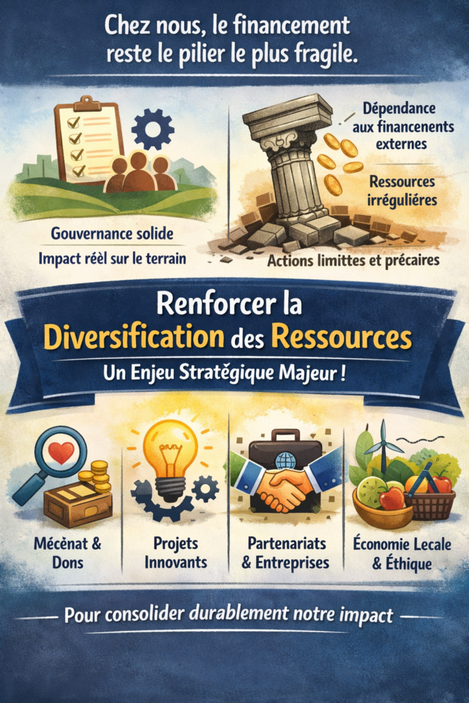 Chez nous, la gouvernance est en place. Les équipes sont engagées. Les résultats sont visibles sur le terrain. Mais un défi majeur demeure : le financement reste notre pilier le plus fragile.